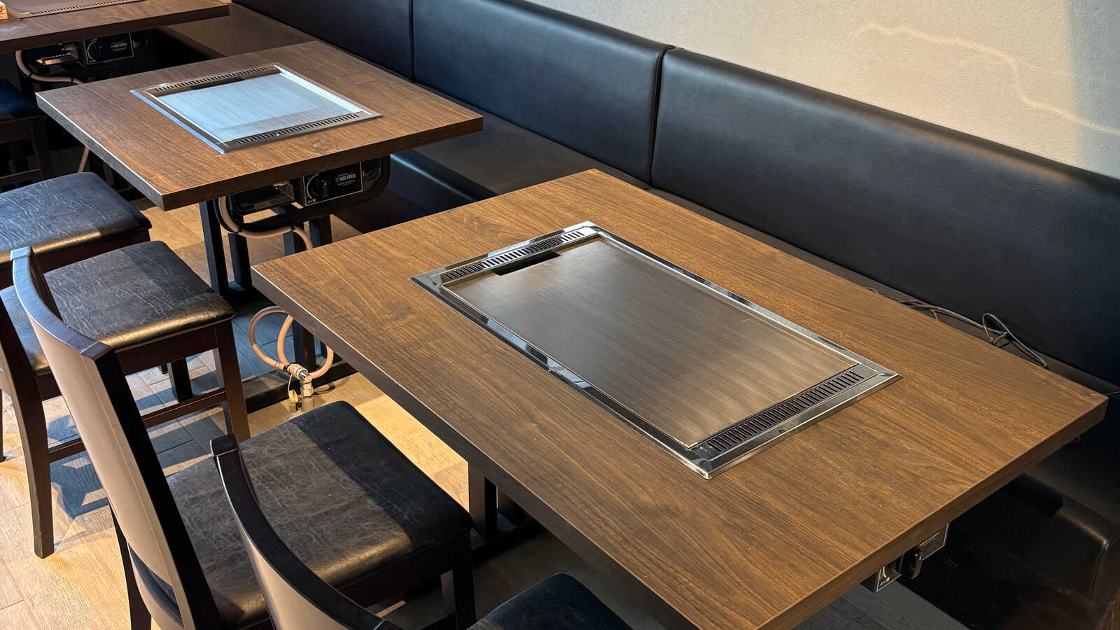 カウンター鉄板も客席テーブル鉄板もガス式です。