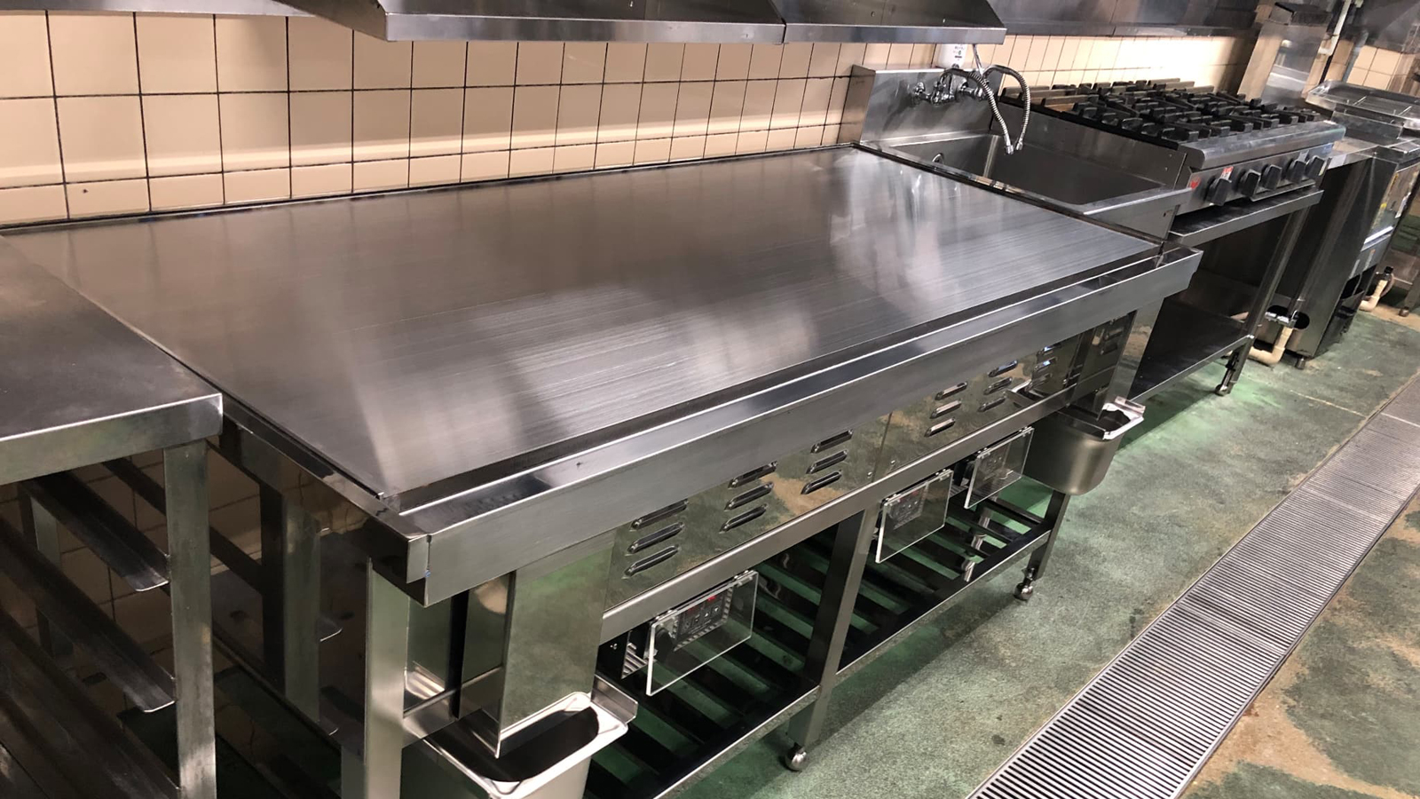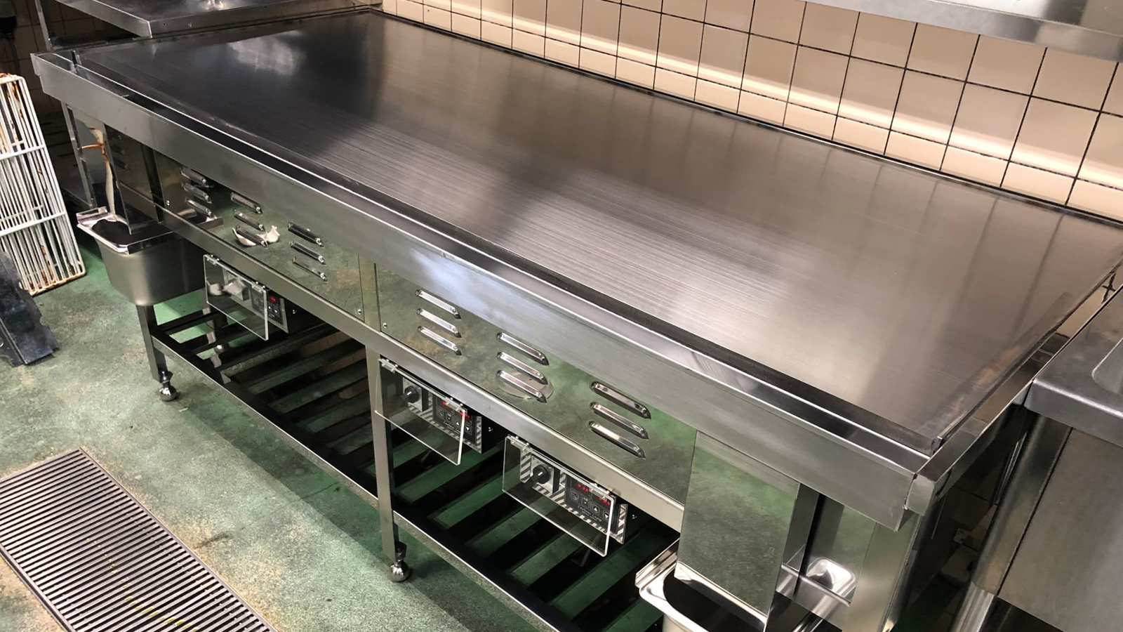 厨房奥の焼き台としてカーボンランプ式鉄板を設置!