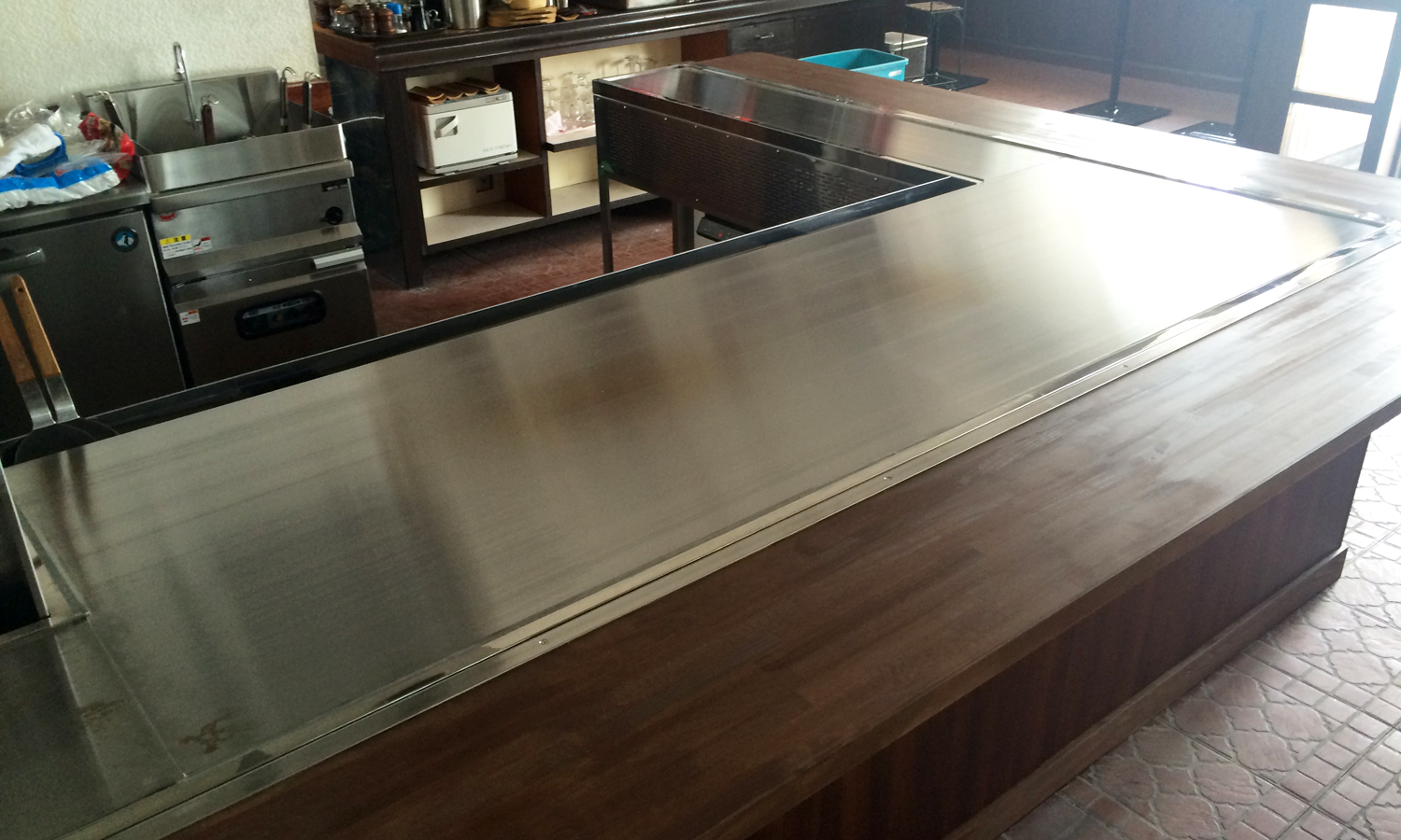 鉄板の隣にガスコンロ台を設置するための特注設計となっております。