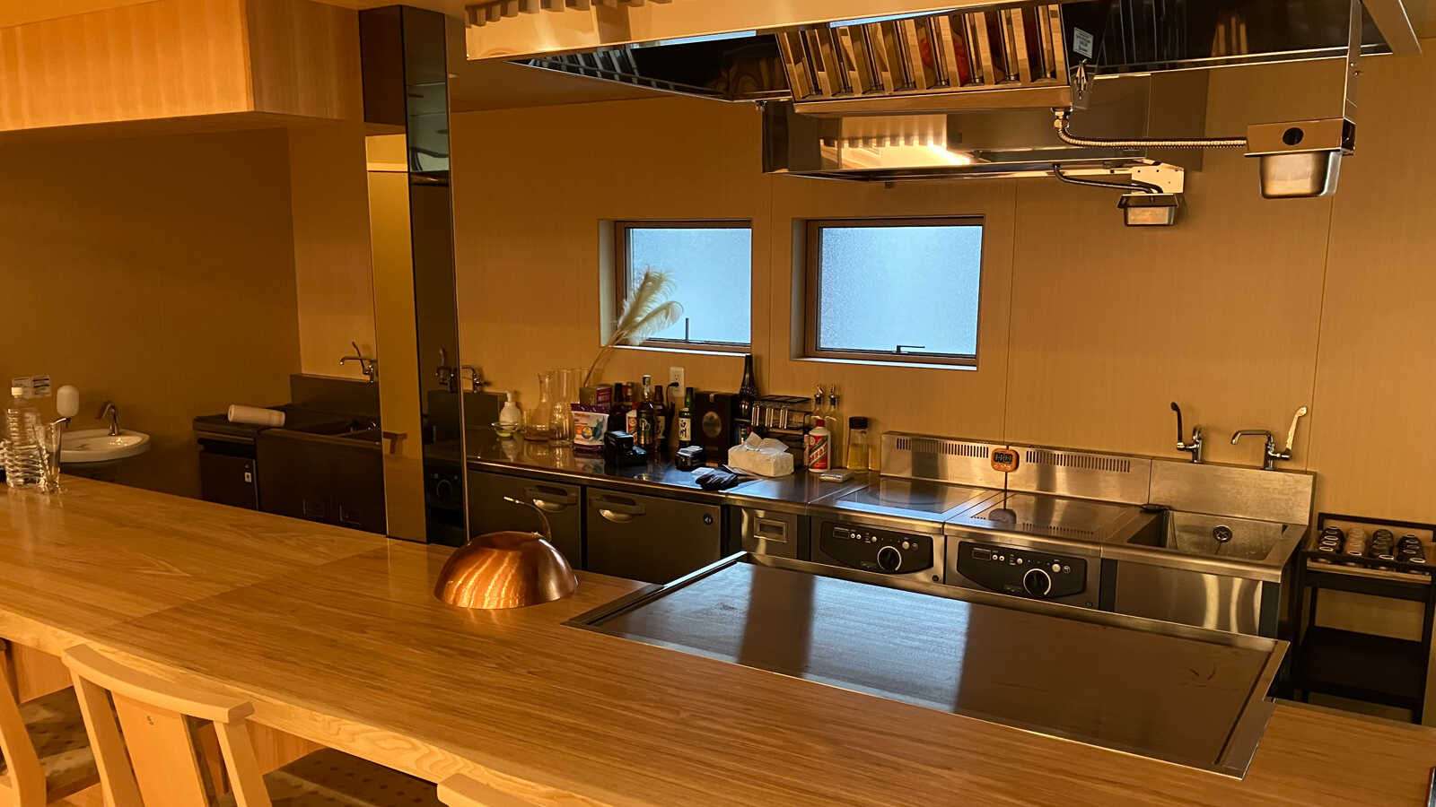 従業員専用施設に全長7mの特注ガス自然排気式鉄板カウンター!